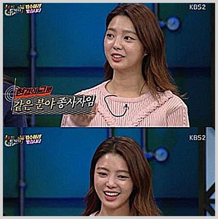 [배우 엄현경] 닮은꼴 연예인으로 배우 김유정과 PRISTIN의 임나영을 꼽습니다. 때문에 스태프들조차도 혼동하곤 한다는데, 마침 KBS2 예능 '해피투게더 시즌3'에서 나영과 나란히 붙어있는 모습을 보여줬습니다. ▲ 예능 '해피투게더 시즌3' 中 일반인과의 교제 경험 밖에 없었으나 자신의 절친 전혜진과 이천희의 결혼을 보면서 연예인과 연애도 괜찮을 듯하단 생각으로 바뀌었다고 합니다.